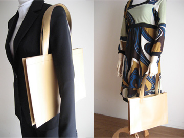 革製なのに折り畳めて、雑誌や書類をたんまり運べるスグレモノなんですよ。