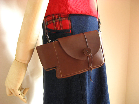 Loveカメラをご覧になったお客様は、材料研究所のTOYポシェットもかなりチェックしてくださっているようです。本当にありがとうございます!お問い合わせが大変多いので、一足先にここでお知らせいたしますが、TOYポシェットは生まれ変わって、『Videoふぉとpoche(びでおふぉとぽっしぇ)』になります。働く袋展では一足早く販売してみましたが、大変好評です!写真のようにボタン部分も革になり、外ポケットを追加しました。カードサイズの平たいポケットが身体と接触する面に付いています。サイズは旧モデルと同じ、価格は9,450円です。メールくださればこちらも承りますのでぜひご検討下さいね。よろしくお願い致します。
