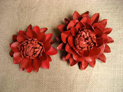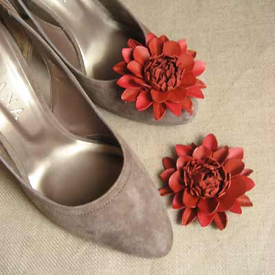 さて、シューズクリップダリアを展示会で販売しておりましたら、何人かのお客様から「もう少し小さめの2個セットがほしい!」というご意見をいただきました。レギュラーサイズのコサージュに合わせて、少し小さめのものをシューズクリップとしてお使いいただいたり、ヘアゴムに留めたいとのことでしたので、トライアル制作いたしました。