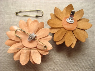ダリアは靴クリップですが、ボリュームがありますのでお洋服などにコサージュとしてお使いくださるお客様がとても多いようです。ピンを後ろにとおしてブローチのようにもご使用いただけますが、ピンをどのように通すか、掲載写真ではわかりにくいものでしたので、別の角度から撮影してみました。