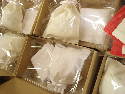 大切なギフトにAging製品をお選びいただく機会も多くいただいており、とても嬉しく思っております。最近、手刺繍イニシャルハンカチのギフトがどんどん増えて、お送りする私共もイニシャルを見ながら包装するので親近感を感じています。
