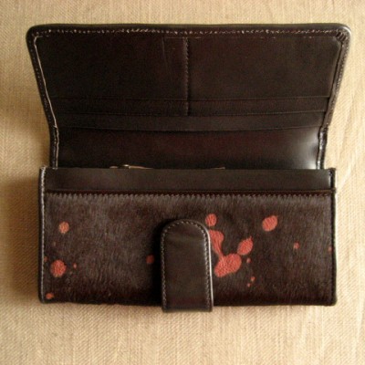 新たにカッコイイ焦げ茶が入荷いたしましたのでこちらに取り急ぎアップいたします!赤い加工が印象的ですね。男性にも女性にも人気のカラーです。