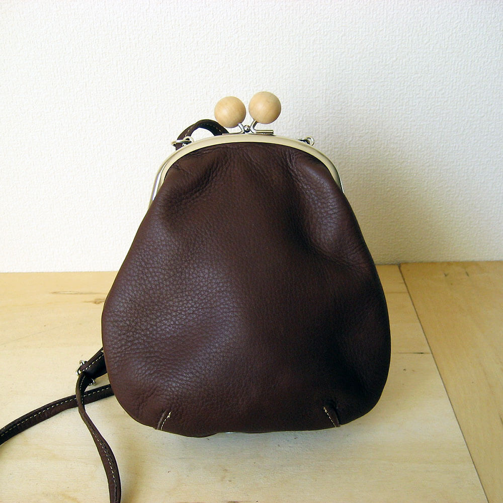 さて、今日のAgingストアの新入荷は、がま口ぺたんこポシェット(ダークブラウン)です。ふわっとした質感の牛革で、かわいいフォルム。